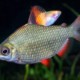 Sur le vivant, les individus sont entièrement jaune-brun ou olivâtre à reflet cuivré. La région ventrale est plus claire. Le dessous de la tête et le thorax sont argentés, légèrement jaunâtres. Le tiers antérieur de la nageoire dorsale est noir, le reste ainsi que les nageoires ventrales, carmin. La nageoire caudale est rosée, la nageoire anale est carminée antérieurement puis rosée postérieurement.