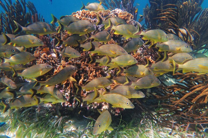 La gorette bleue (Haemulon sciurus) est un poisson originaire des eaux tropicales et subtropicales de la côte Atlantique des Amériques. Ces petits prédateurs des récifs sont rencontrés seuls ou en grands groupes.