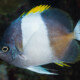 Ce poisson est bicolore avec un corps majoritairement noir et blanc. La tête et la partie arrière du corps sont noirs. Une large rayure verticale de couleur blanche démarre en arrière de la tête, au niveau du pédoncule de la nageoire pelvienne et des nageoires pectorales, et se termine environ au milieu de la nageoire dorsale. Au niveau de cette bande blanche, les rayons de la nageoire dorsale sont de couleur jaune et les premiers rayons de la nageoire anale sont, eux aussi, de couleur jaune. Le pédoncule de la nageoire caudale est noire, cette dernière est en grande partie blanche, seule l'extrémité est noire.