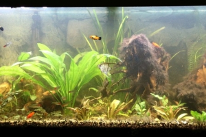 Le platy variatus est une espèce paisible qui ne présente généralement pas de problèmes de comportement dans un aquarium communautaire.