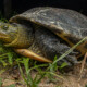 The chinese stripe-necked turtle is a reptile living in a group or alone naturally found near to the surface. This species is omnivorous with herbivorous tendency .