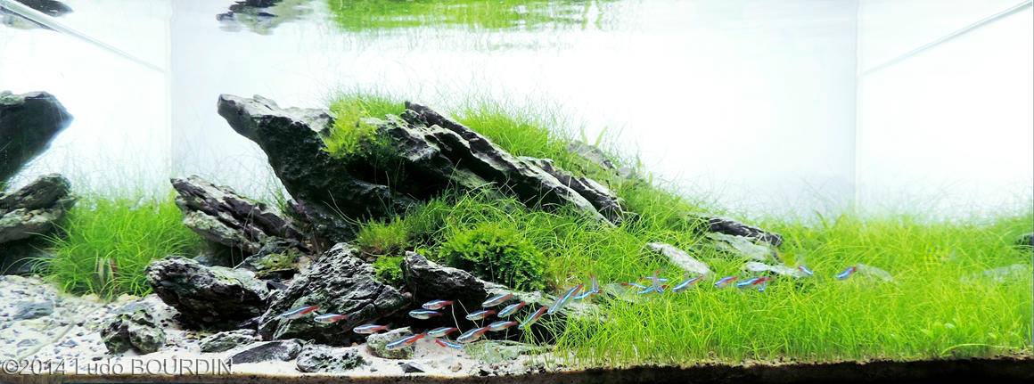 Ce que l’on nomme le nature aquarium ou encore le NA style, est l’essence même de ce qu’a créé Takashi Amano. Un arrangement de roches, de bois et de plantes réfléchi. Chaque élément trouve sa place dans cet aquarium de sorte à créer un paysage à l’échelle 1/1 à l’aspect sauvage et naturel.