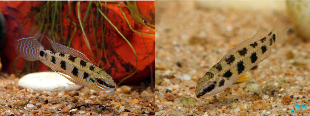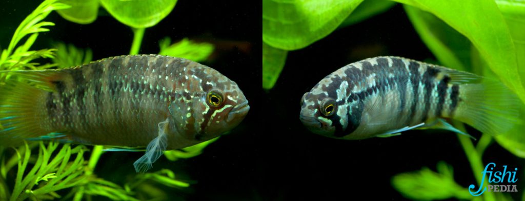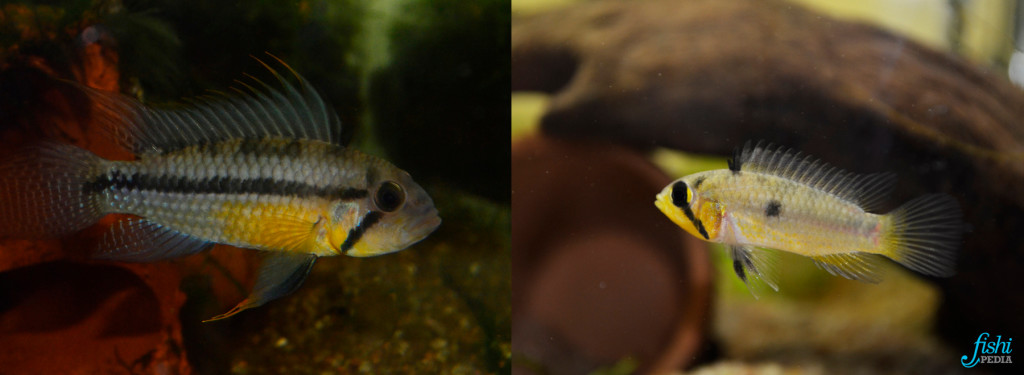 Ça commence à se compliquer avec d’autres genres de petits cichlidés comme l’adoketa. Ici, la distinction est principalement basée sur le fait que les bandes verticales du mâles sont moins marquées que chez la femelle. De plus, il semblerait que le mâle ait une tête plus carré et plus massive.