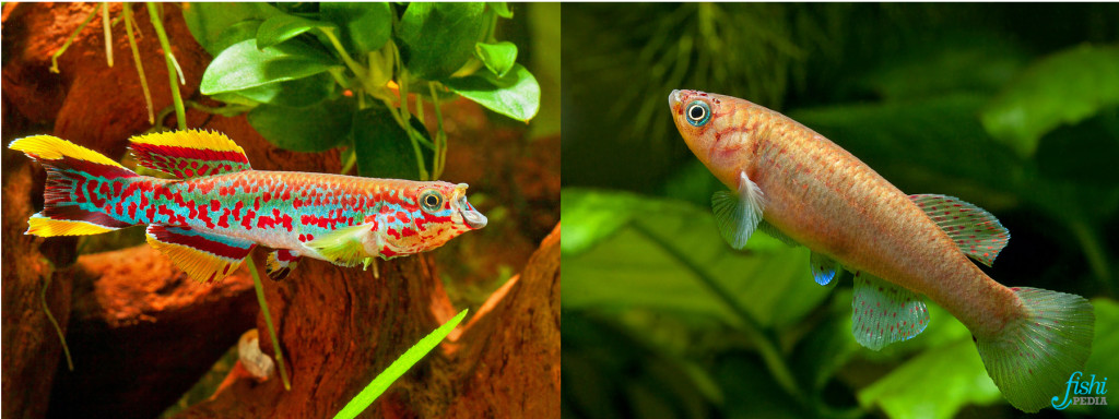 Ainsi, au sujet du dimorphisme, hors lac africain, la palme revient aux cichlidés nains. Par exemple, les poissons du genre Apistogramma. Les mâles sont en effet plus grands et plus colorés que les femelles, la différence est très perceptible.