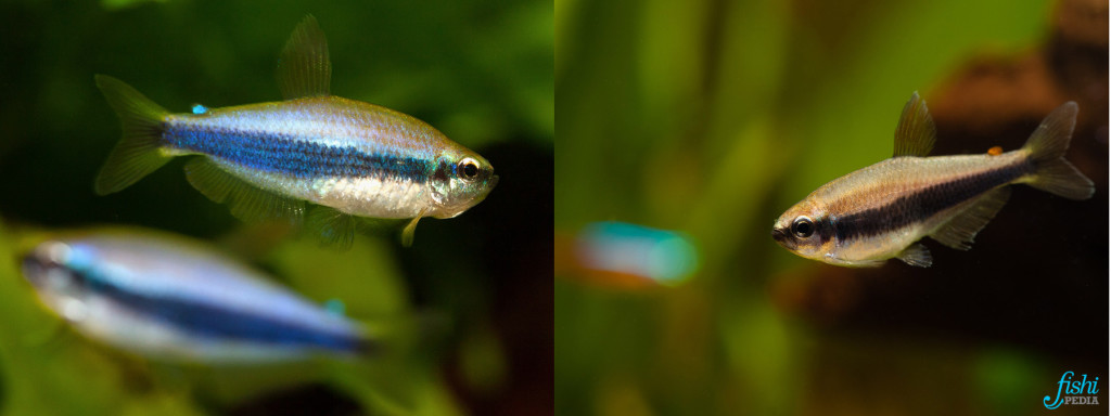 A commencer par les Tétras : La plupart de ces poissons sont des espèces qui ne présentent pas un dimorphisme sexuel flagrant. A tout le moins, à l’âge adulte, les mâles sont parfois légèrement plus colorés. Les femelles sont souvent plus grosses et ont l’abdomen plus rebondi. Étant des poissons vifs et toujours en banc, la différentiation devient parfois sportive !