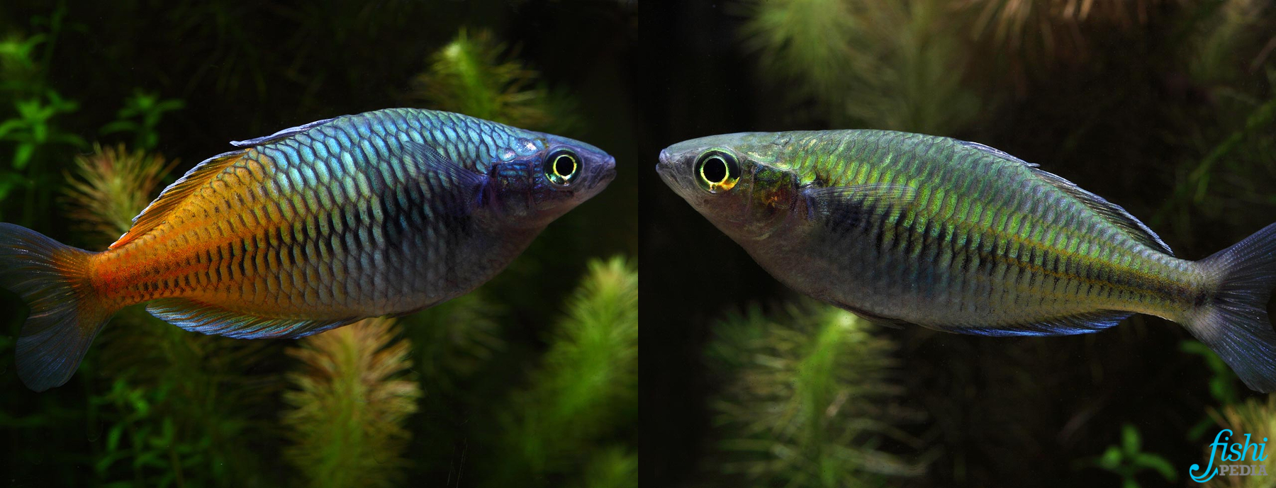 Les poissons arc-en-ciel , originaires d’Océanie, ont un dimorphisme marqué. Les mâles sont plus colorés que les femelles et sont généralement de plus grandes tailles.
