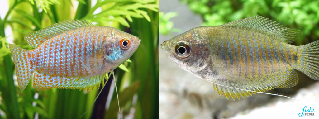 Les colisas et gouramis ont des spécifications similaires mis à part qu’ils ne sont pas violents. Les mâles sont plus grands et colorés. Souvent les femelles sont ternes, plus discrètes voire timides.